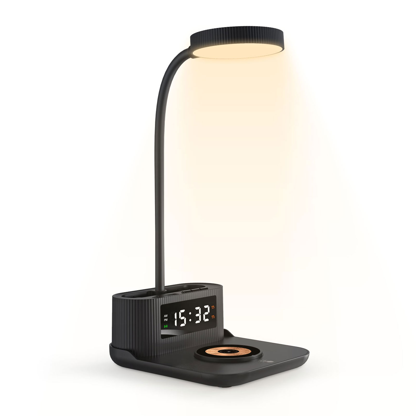 ŞAFAK SİYAH MASAÜSTÜ IŞIKLI SAAT VE ŞARJ STANDI